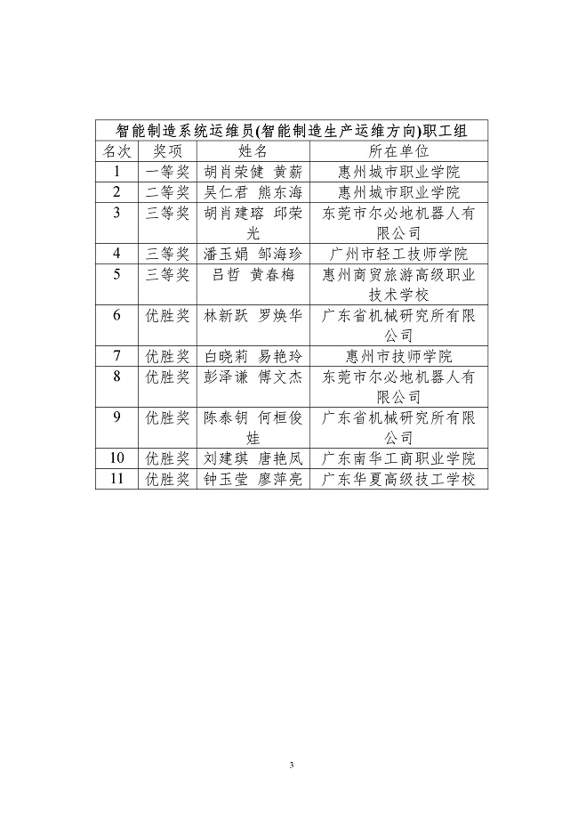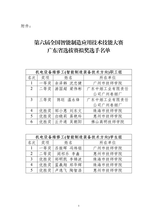 根据广东省人力资源和社会保障厅关于印发《广东省职业技能竞赛管理办法》的通知(粤人社规〔2022〕12 号)文件要求,现将第六届全国智能制造应用技术技能大赛广东省选拔赛拟奖名单予以公示