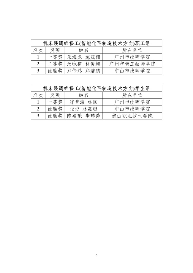 第六届全国智能制造应用技术技能大赛广东省选拔赛拟奖名单公示