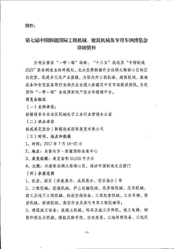 关于函请参加第七届中国新疆国际工程机械、建筑机械及运输车辆博览会的函