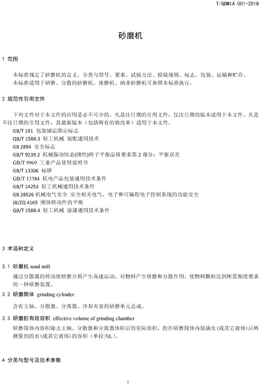 砂磨机团体标准(征求意见稿)