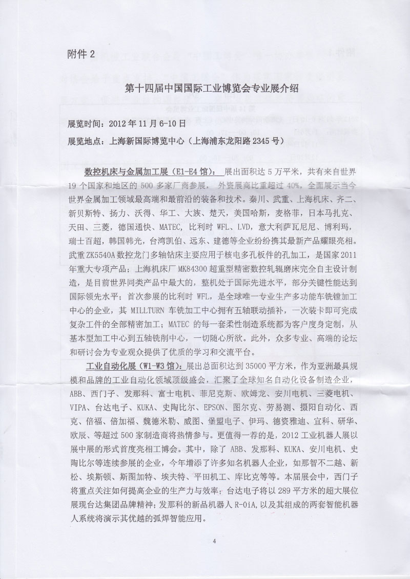 转:关于邀请参观第十四届中国国际工业博览会的函