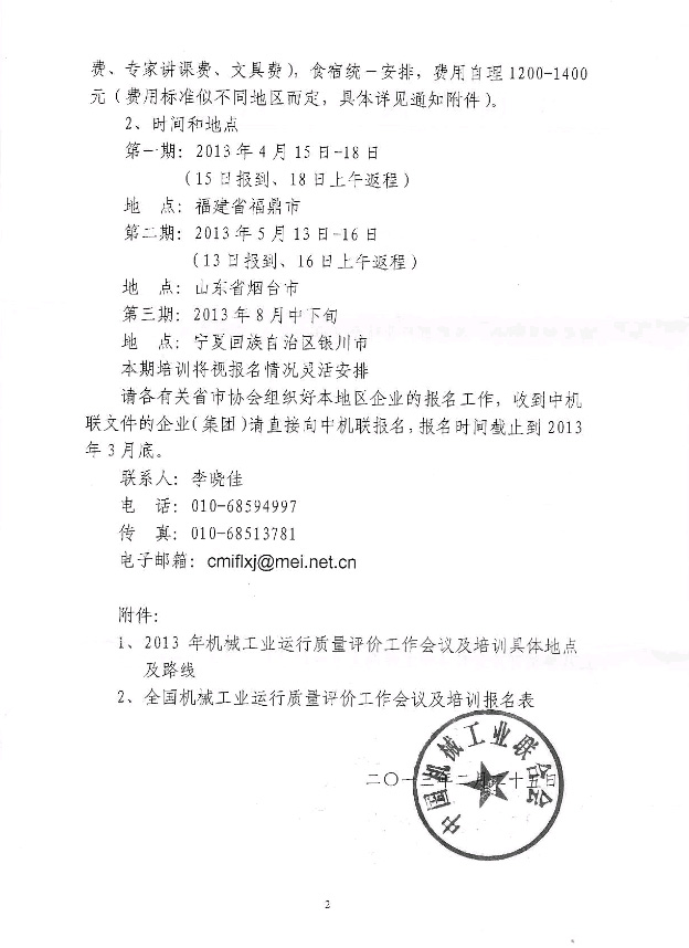 转发:2013年机械工业运行质量评价工作会议及有关培训的通知